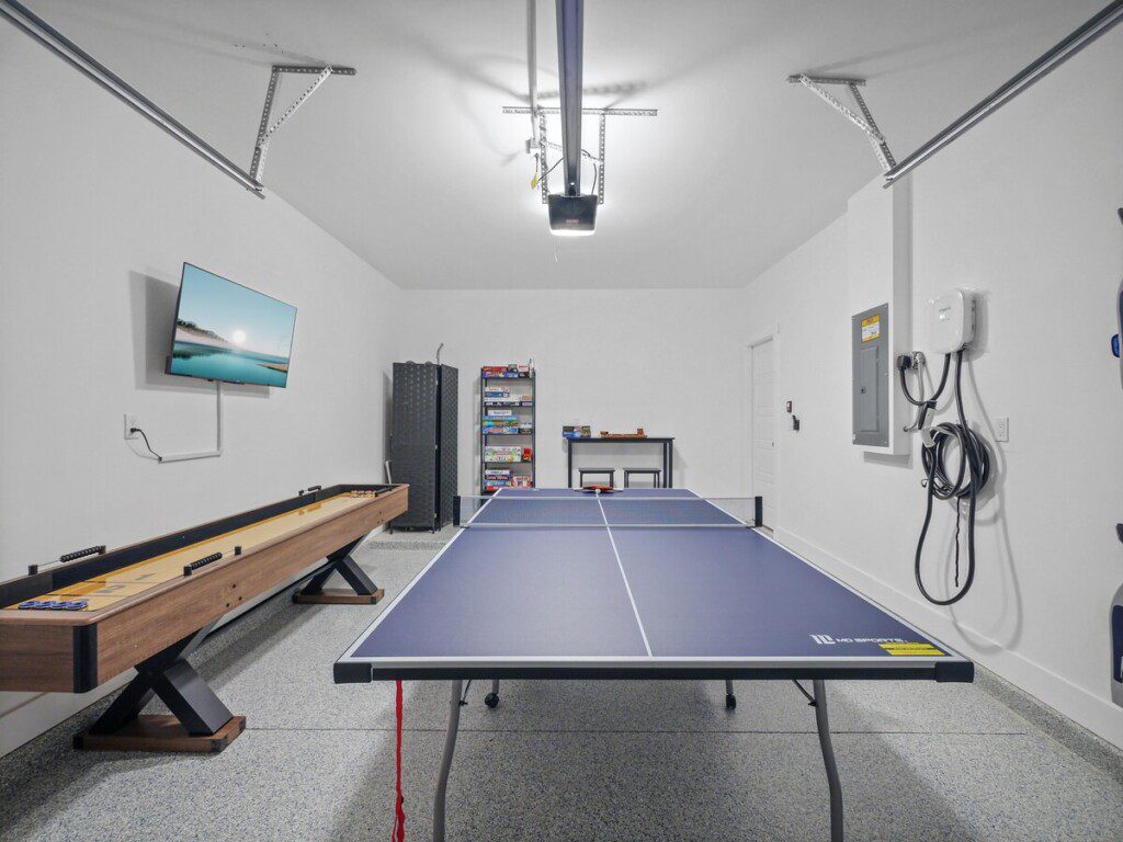 🏓 Game Room! Shuffleboard table, ping pong table & more