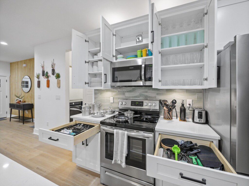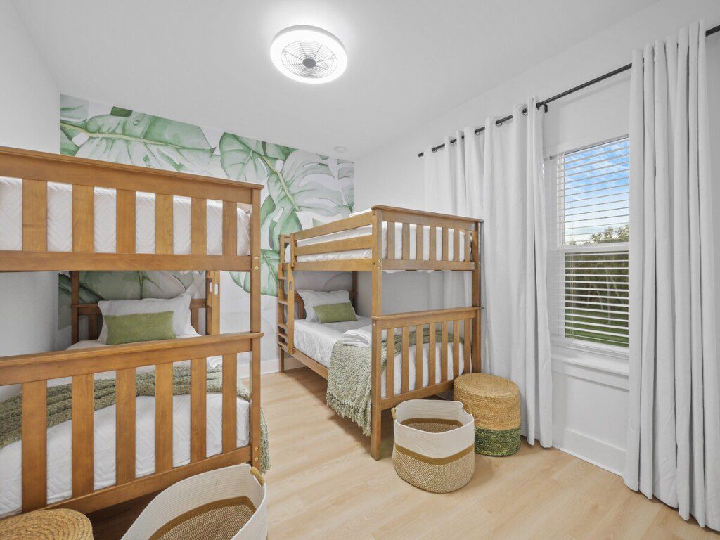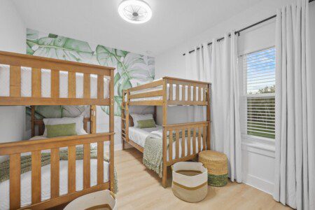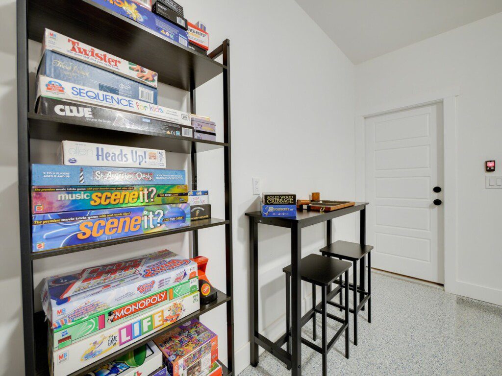 The Retreat at Vilano is a fantastic place for families and children of all ages. While it is family-friendly, it is not child-proof. Furniture is not bolted into the walls, and drawers and cabinets are not equipped with child safety fasteners or locks. Ultimately, you accept responsibility for the safety of all guests including children <18 years old. We do provide a child gate, as well as a pack and play. There is also an alarm on the sliding glass window that needs to be silenced before opening it. This keeps little kids from wondering into the pool area.