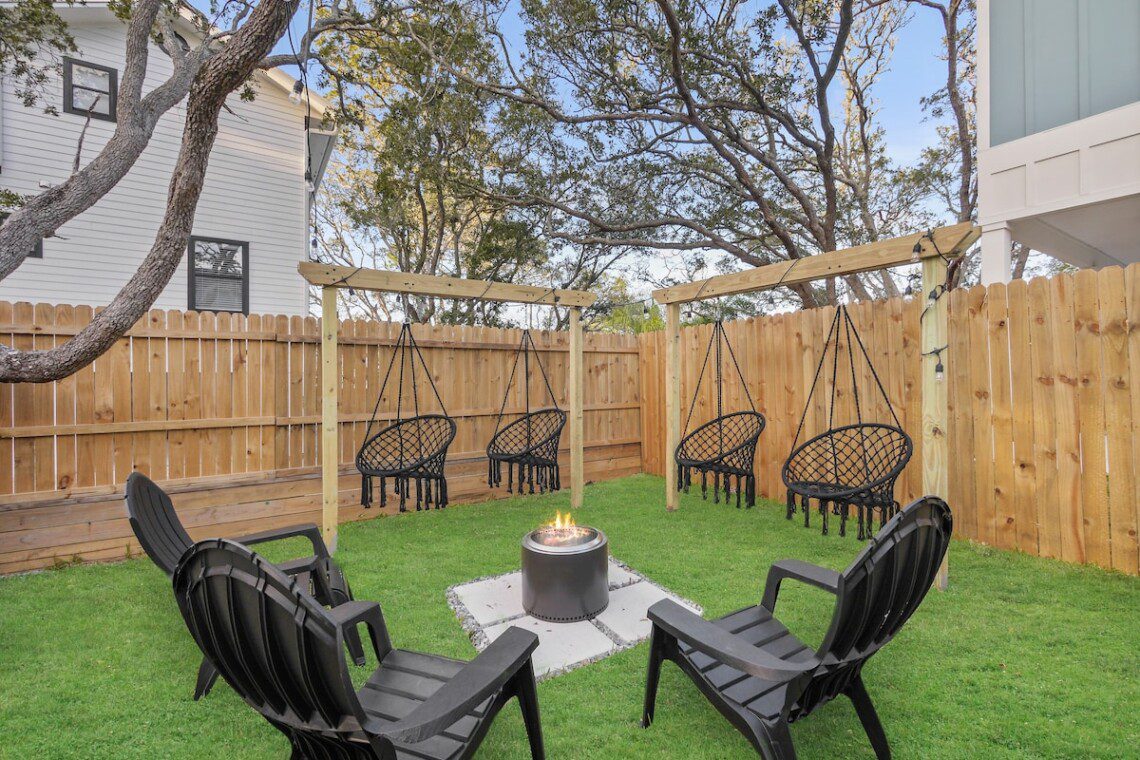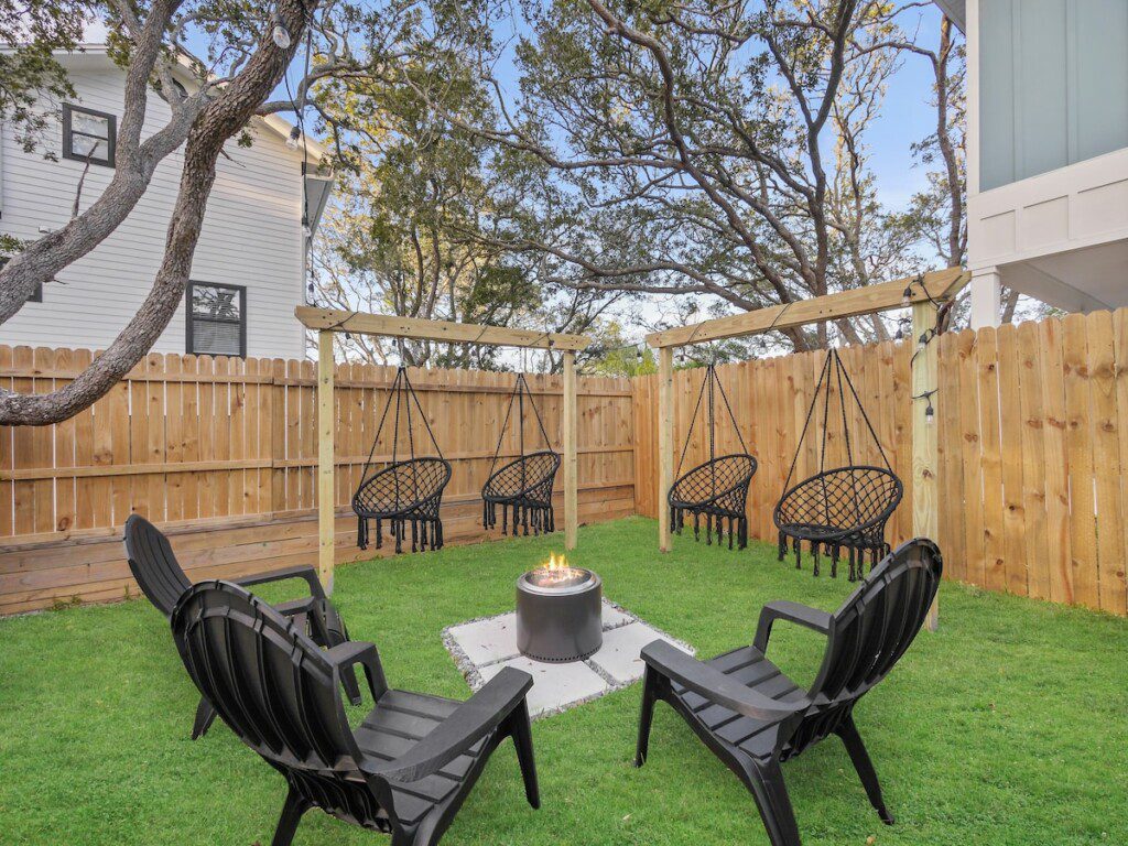 🔥 Solo firepit + hammock chair lounge area