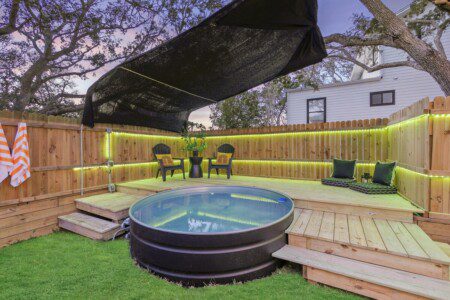 🏊 Pool! A unique cowboy pool + LED light area. Not heated—perfect ice plunge in winter!