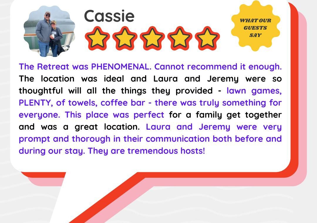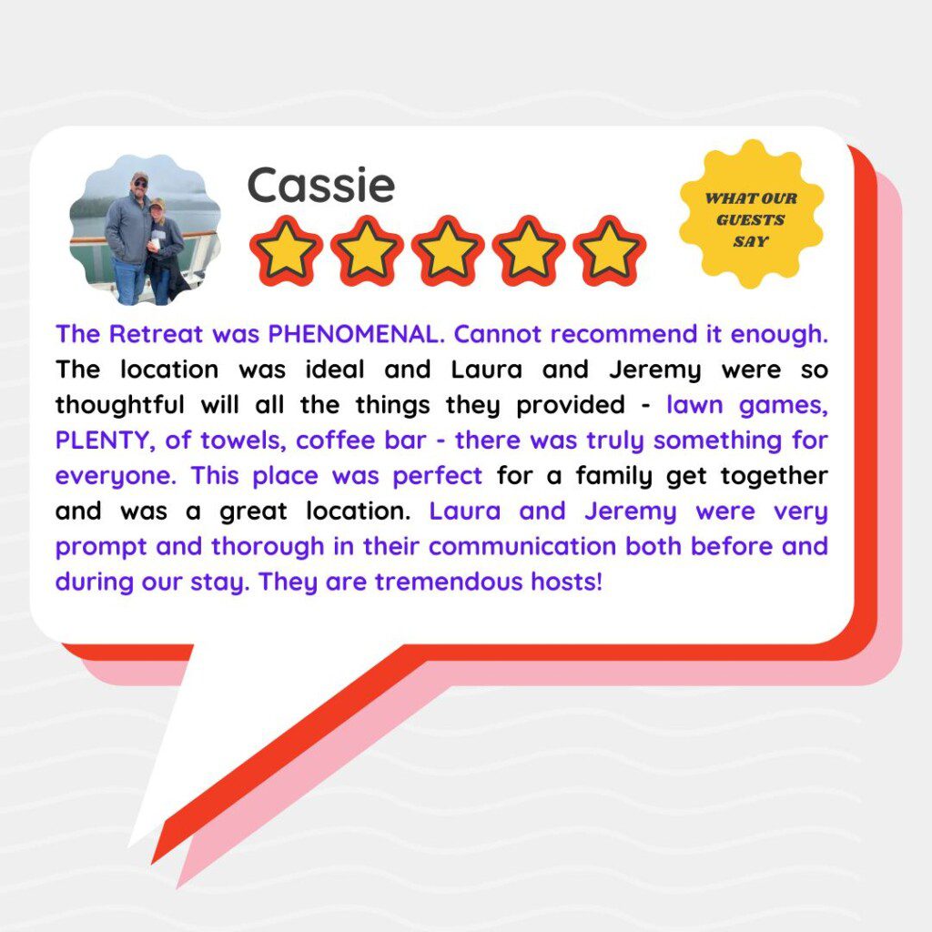 Whether you’re planning a family getaway, couples’ retreat, or remote-work escape, you’ll leave refreshed — and already dreaming of your next visit. We invite you to check out our reviews for more direct compliments from past guests!