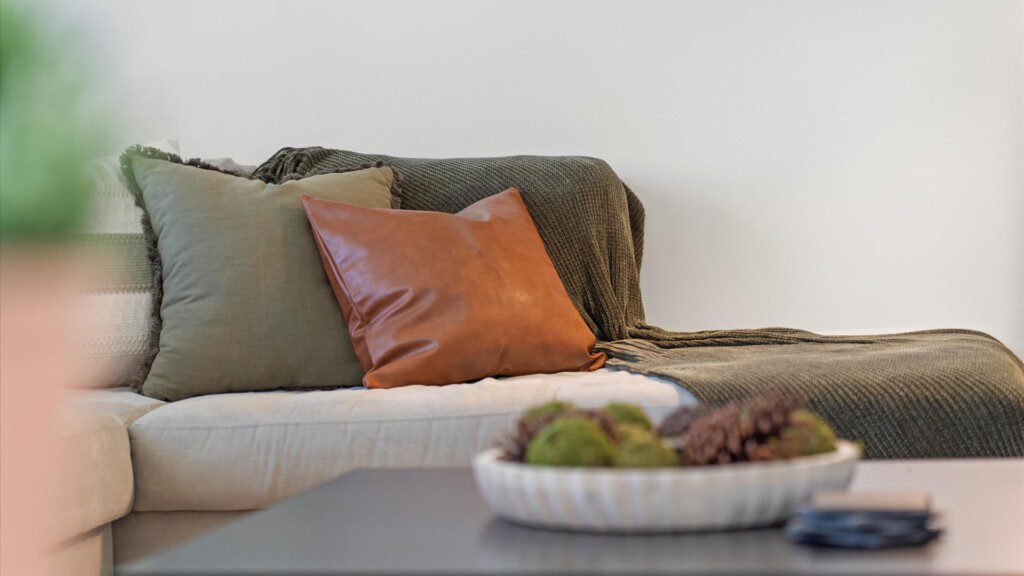 – Oversized L shaped couch with two extra lounging chairs