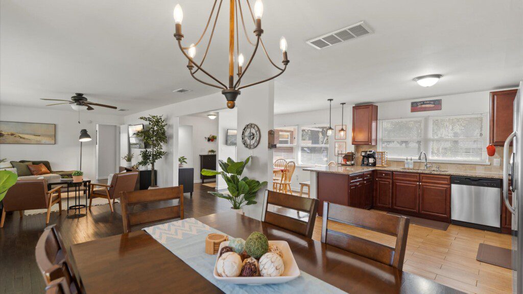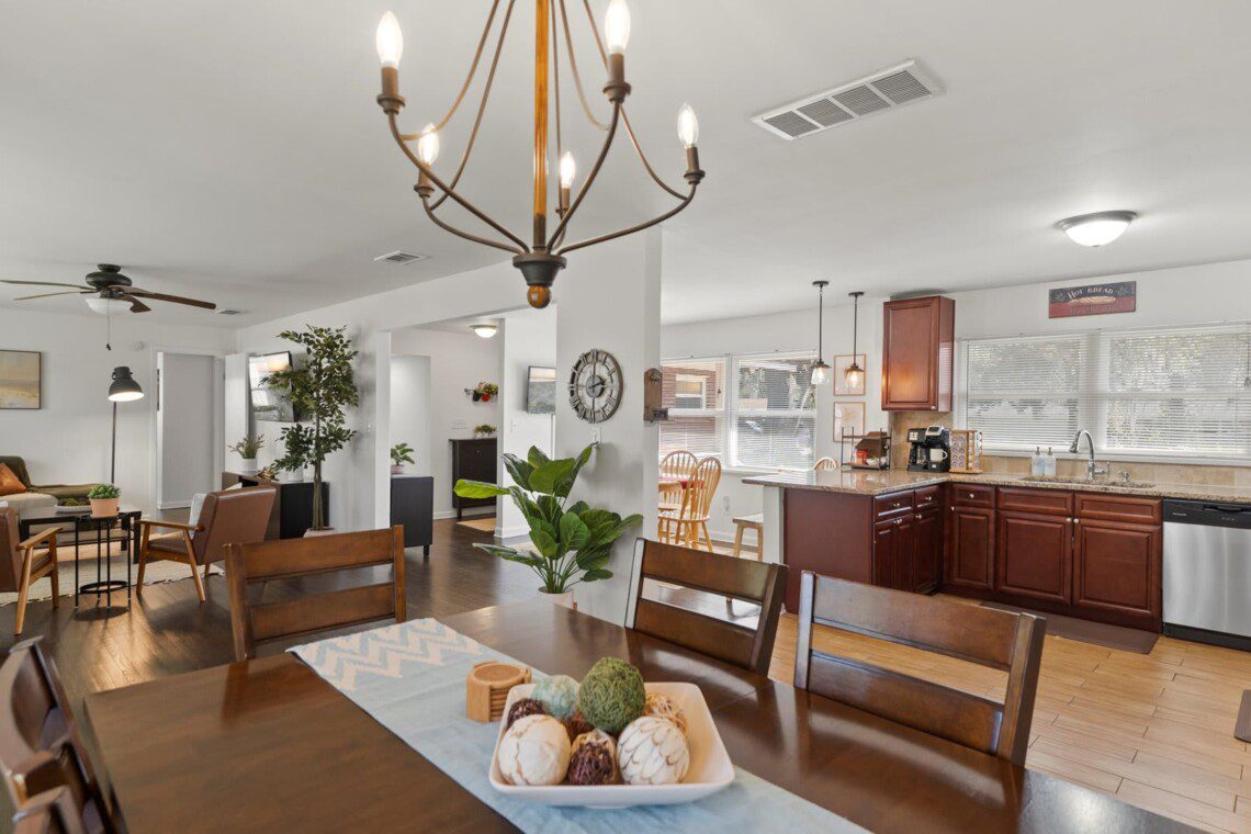 This fully furnished 3BR, 2BA home offers comfort, style, and convenience in a walkable neighborhood. You can easily connection to major highways and business centers as well as all major hospitals. Multiple grocery stores and chains within a couple miles. The kitchen is fully stocked with cookware, appliances, and a dual coffee maker. Relax in the private backyard with string lights and fire pit. Bedrooms feature luxurious bedding, ample storage, and workspace options. Dog-friendly!