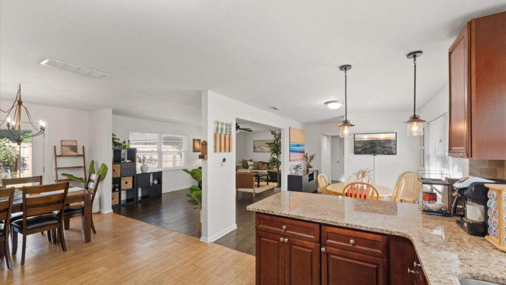 – Open concept living room kitchen, and dining area with lots of natural lighting