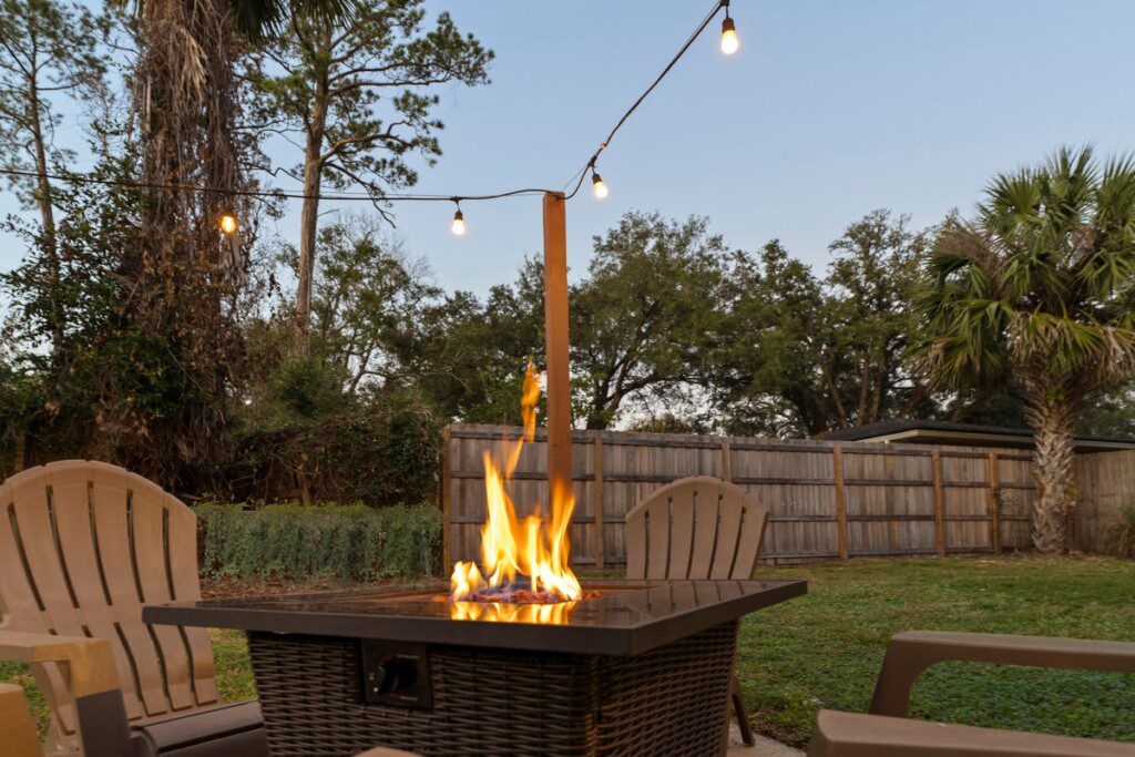 The firepit is one of the most enjoyable features of the house, however, safety comes first. If you do not feel comfortable working an open propane fire, please do not use the firepit. As mentioned, there is a fire extinguisher in the garage. Before going to bed, please remember to turn off the string lights so neighbors can sleep.